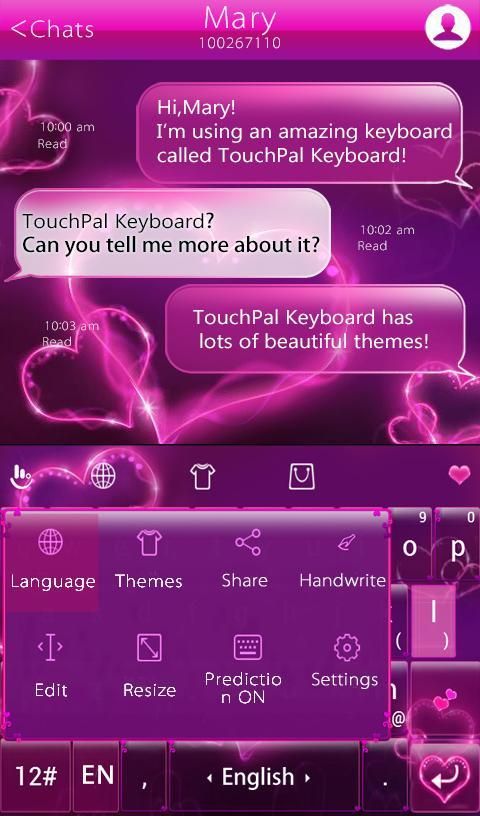 Install yang Amour Love Heart Keyboard Tema ---> Tekan ikon ---> Ini akan diaktifkan oleh TouchPal Emoji Keyboard otomatis!