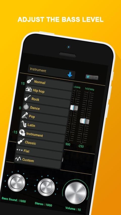 Amplifier Bass Booster kontrol equalizer untuk menyesuaikan bass dan treble frekuensi dari semua lagu favorit Anda. Dalam rangka untuk memiliki pengalaman mendengarkan musik dioptimalkan, menggunakan headphone atau speaker eksternal.