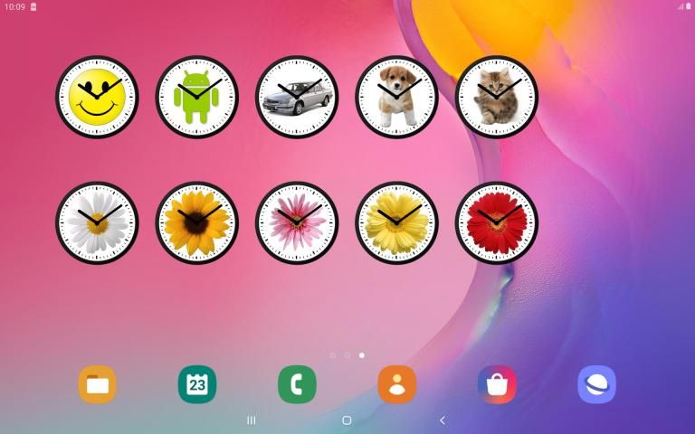 Widget for the Home screen as analog clock. There are twenty kinds of dials for any taste. Maximum size of widget is 256*256 pixels.