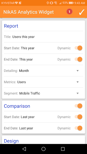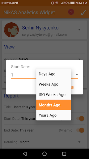 Widget for Google Analytics has configuring dynamic period for Google Analytics report in Today, Yesterday, 7 Days Ago, 30 Days Ago, N Days Ago or static period as fixed dates.