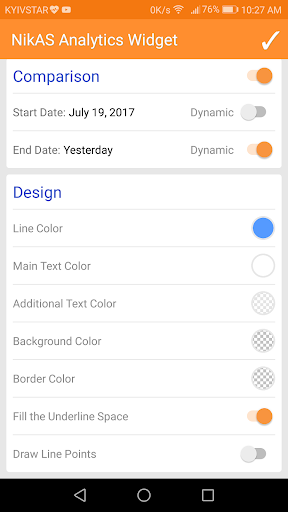 Widget's flexible configuration of the color scheme for user interface makes it possible to fit it into any design.