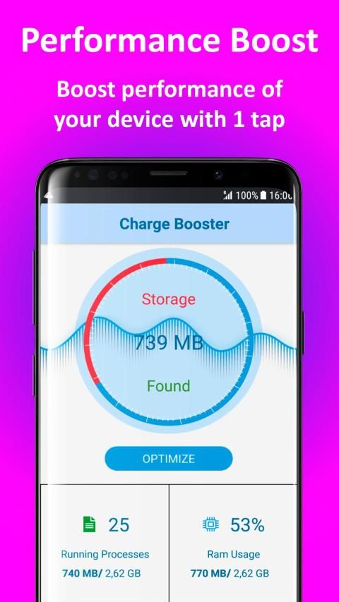 One Tap Boost helps to speed up your device by freeing up RAM. This feature is harmless - all vital core system services will remain running while unused apps will be unloaded. You can run a speed test to see how much faster your device will be after such boost.