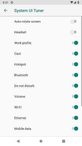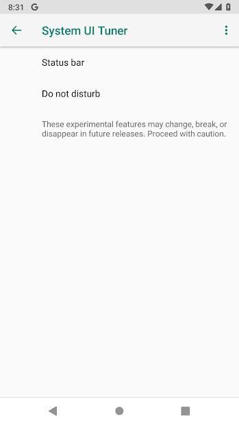 Konten dari Tuner UI akan bervariasi bergantung pada versi Android apa yang Anda jalankan.
