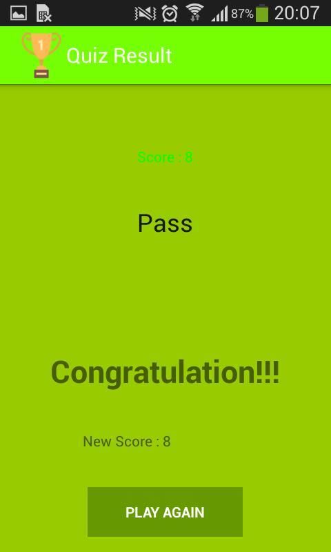 Pengguna memiliki 10 detik untuk memberikan jawaban dari setiap pertanyaan dan dapat melihat hasilnya sebagai skor serta skor tertinggi.