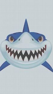 Angry Shark Warna Dengan Nomor Hungry Fish Pixel Art sederhana Unicorn Mandala cat Jumlah oleh Mewarnai halaman game. Jumlah Sihir Mewarnai Apps 2018.