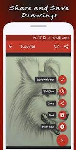 Drawing Animals offers more than always adding new animals drawing; you can share your favorite animal drawing with your friends, you can set the animal drawing as your phone’s wallpaper, you can add it to your favorite drawing list, and you can save it with your gallery.