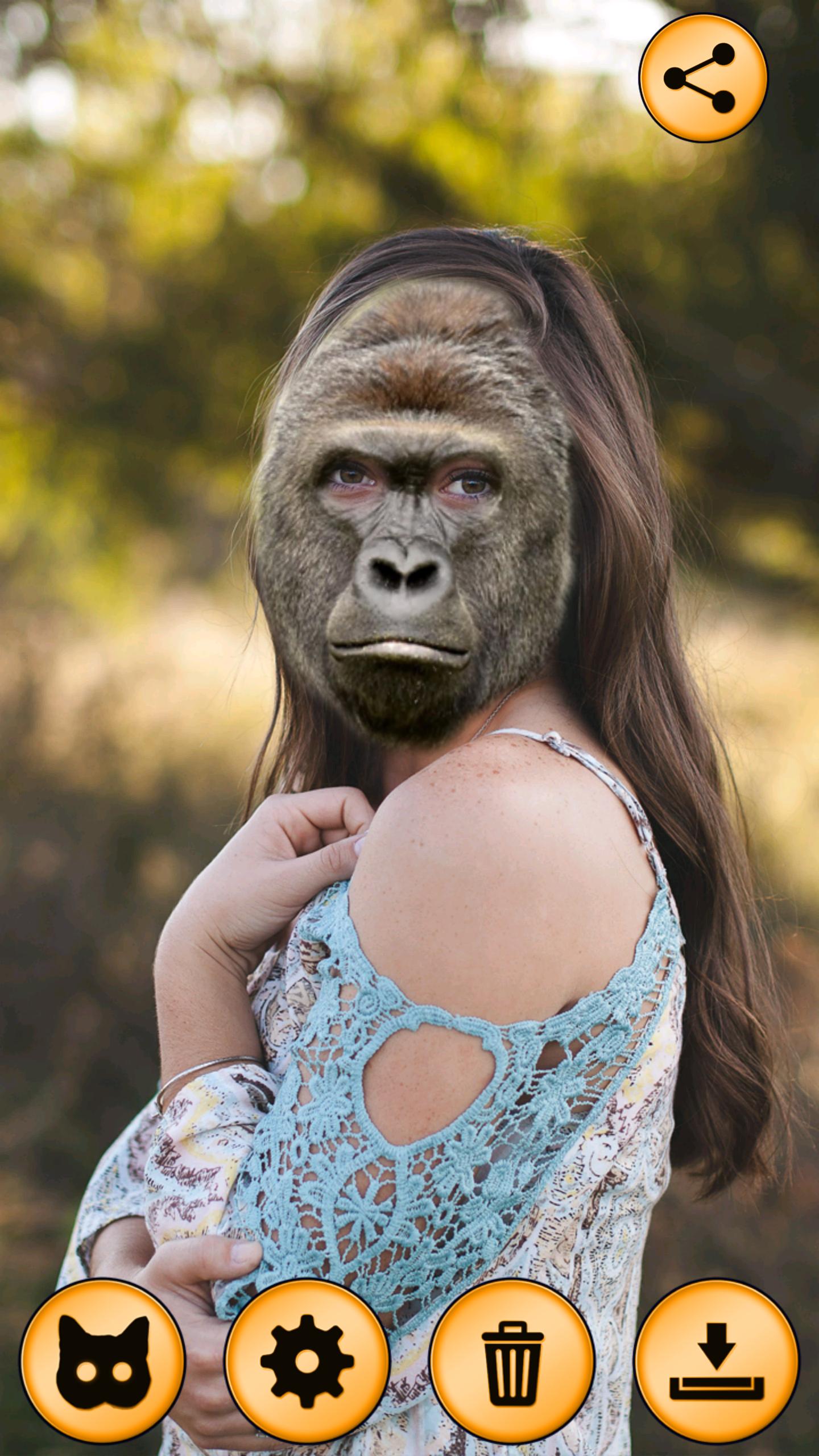 Do you need a fantastic photo editor which will make the funniest “photo montage with animals” of all? Great news, download Animal Face Changer and your problem is solved! A sticker app which is free and able to help you “animal yourself” is finally here. No additional funny frames and photo effects are needed. You can create hilarious animal wallpapers free with your selfie and our miraculous “photo editing software”. Your photo gallery can now be full of great pics, both yours and some of your friends' too! It is a free face swap application, and it doesn't require a test to see what animal you are – simply allow this “sticker app for pictures” to perform the action and your montage is ready!