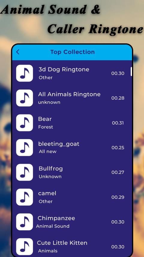 juga menyediakan koleksi nada dering Hewan, jadi gunakan nada dering baru tidak hanya sebagai nada dering tetapi juga untuk nada pesan, nada alarm, dll.