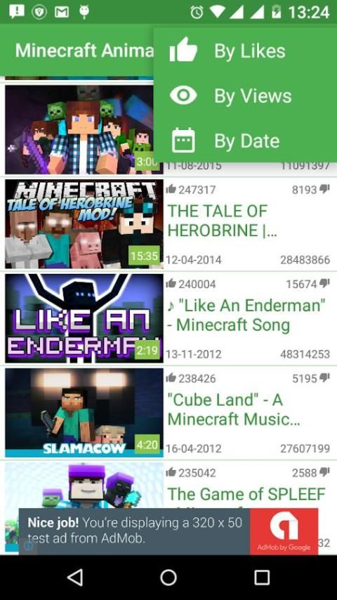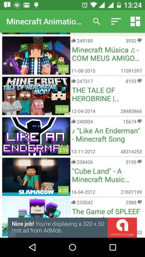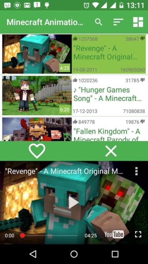 Minecraft Animasi Video App berisi 1000 dari video yang berhubungan dengan Minecraft.