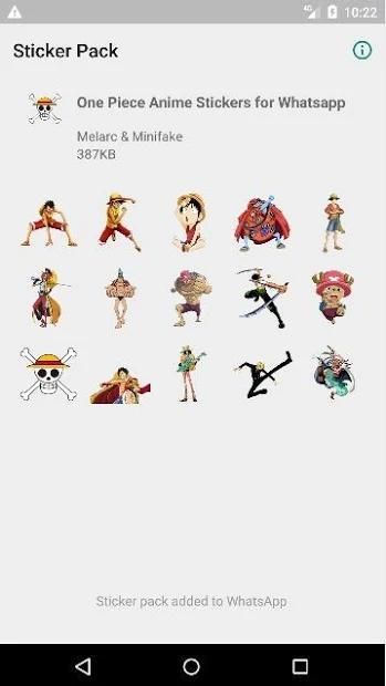 Discover apps for Android here, 20,000+ users downloaded Anime Sticker One - Piece para WhatsApp latest version on 9Apps for free every week! This indicates many people like this application. This hot app was released on 2018-11-28. However, has been a fashionable app for a long time.
