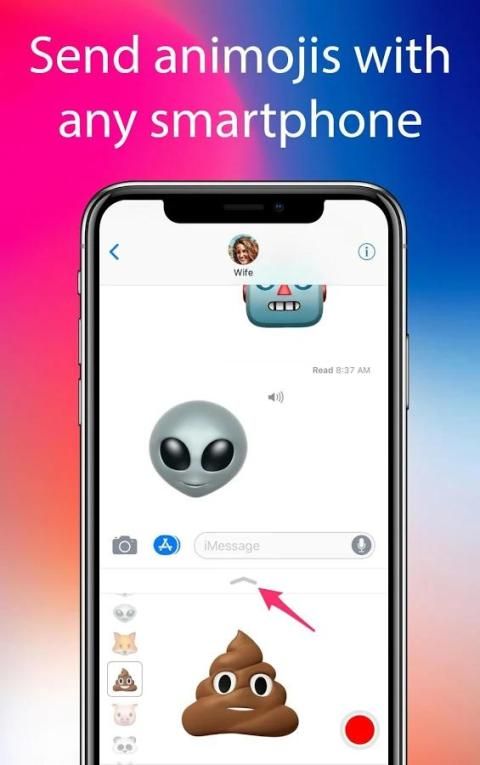 Animoji Animated availables: babi, kucing, ayam, fox, tumpukan kotoran, kelinci, unicorn, panda, monyet, robot, alien dan anjing.