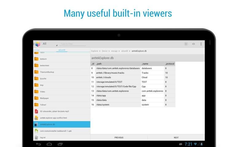 - Build-in penampil untuk teks, gambar, file video dan editor teks, zip penampil, penampil apk