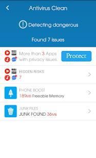 Antivirus Cleaner Phone Boost keeps you safe from the latest mobile threats such as viruses malicious and spyware apps by monitoring newly installed apps on your mobile device. Protect your phone to avoid unwanted advertising. Help you check the advertisement of the application you have to run and remove it.