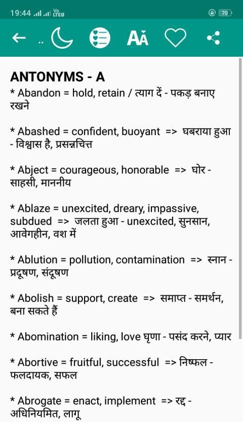 Aplikasi ini berisi Sinonim, Antonim, substitusi satu kata & kosakata penting dengan makna hindi untuk kata tertentu.
