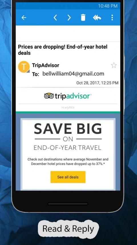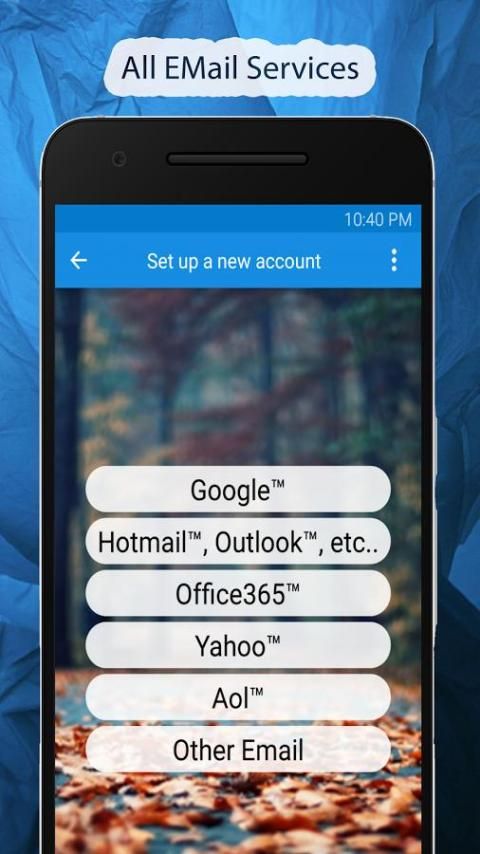 Hotmail, Gmail, Yahoo, Outlook, AOL, iCloud, Live, Exchange atau GMX , klien email ini mendukung semua penyedia email utama dan setiap IMAP lain atau kotak surat POP3-enabled.