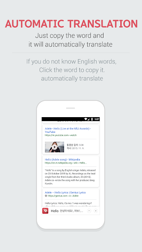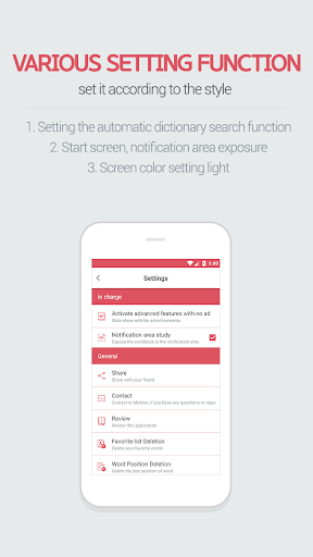 - Kata bahasa Inggris terpapar di area notifikasi. Tingkatkan pembelajaran bahasa Inggris Anda.