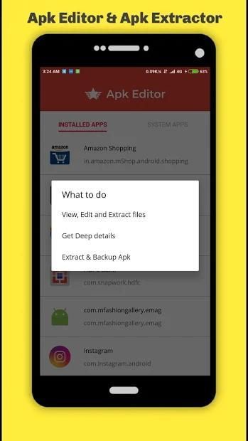 2. Option to choose between extracting apk or opening/ editing apk.