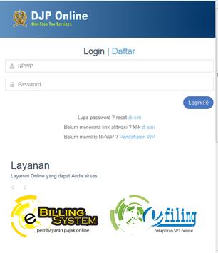 Aplikasi ini merupakan aplikasi unofficial yang membantu mengarahkan ke web resmi djp online