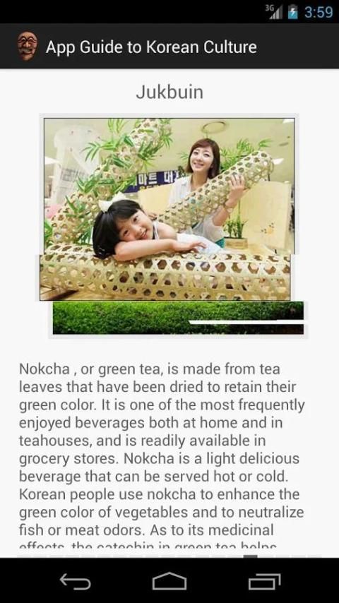 Sebuah cepat aplikasi-panduan untuk Budaya Korea. Dalam aplikasi ini Anda akan diperkenalkan dengan aspek menarik dari Budaya Korea seperti Hallyu, Hanbok, Hanok, Jimjjilbang, Ssireum, Kimchi, Bulgogi, Noraebang dan banyak lainnya.