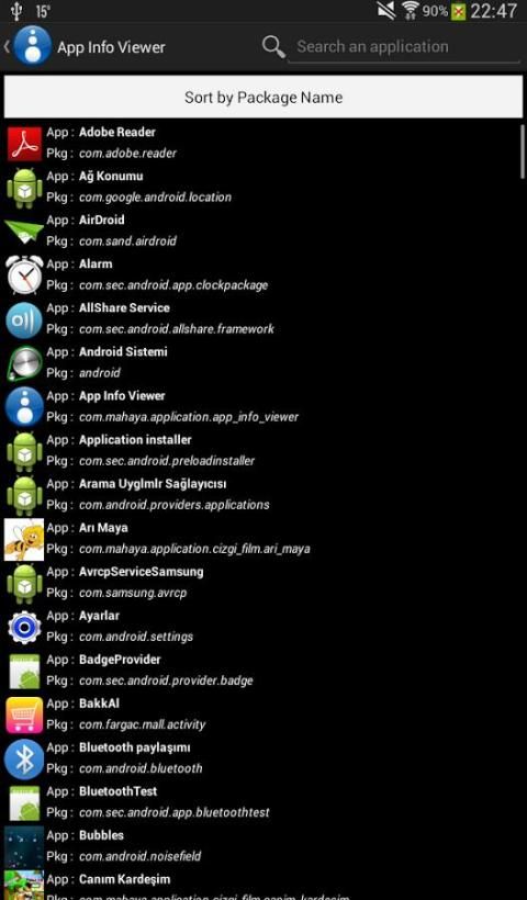 * Sorting daftar nama aplikasi atau nama paket
