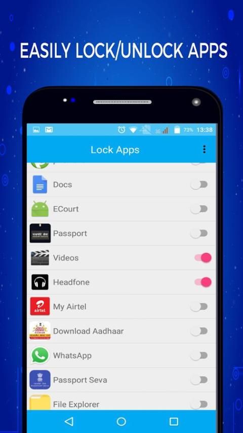 Sebuah App Lock Aplikasi dikembangkan dengan pertimbangan cermat dari kebutuhan pengguna pada tahun 2017. Aplikasi ini menyediakan fungsi sederhana dalam cara yang sangat sederhana, Ini mencegah penggunaan yang tidak sah dari aplikasi di ponsel android Anda.