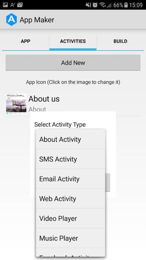 Buat Apps dengan Tentang Kami halaman dengan App pembuat