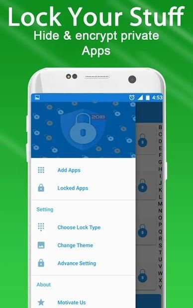 Do you need advanced protection tool ? Here is the best app lock application for you.app lock provide you Protect privacy with password, pattern, fingerprint lock.AppLock can lock Your social accounts, Gallery, Messengers, SMS, Contacts, Settings, incoming calls and any app you choose. Prevent unauthorized access and guard privacy. Ensure security.App lock has option to enable invisible pattern lock. No more worry people may peep the pin or pattern. Keep safe!With this app lock, you will never worry about something like your kids mess up settings, paying for games! its so cool child lock feature!The app is perfect app lock that help you to keep your personal security, make protection app from everyone.App Lock is a very interesting app (Mobile software) with which users will be able to add an additional level of security to their devices. App Lock is the the fastest app lock technology for android mobile with high secure that provides all lock system for your android phone - does not meter with the OS version and hardware.Features:# Lock apps with a password, pattern password safe with anyone# The vault: Safe gallery vault, private photo vault help to hide pictures and hide videos. # Lot of beautiful password lock themes, pattern lock screen themes# Customized lock screen password theme for the app, make privacy screen with style you wanted# App block Settings automatically right after app is opened at first screen, help to prevent some uninstall app# Protect your emails, SMS, call log# Small app size, low memory usage, power saving & save battery# Three securities private mode: Lock apps with password lock, pattern lock or DIY. The keypad lock screen with passcode, DIY help you to make yourself keypad lock screen, pattern lock screen using your photo on the gallery# Option to make invisible pattern on unlock screen, people can not see your pattern lock screen while you are unlocking. More safe!# Easily to lock phone apps, unlock phone apps easily from an app list by one click# Explorer more apps and the locker themes from the “More apps” feature.# Password manager: Change password type between passcode, pattern, DIY and reset password