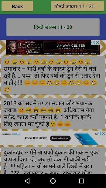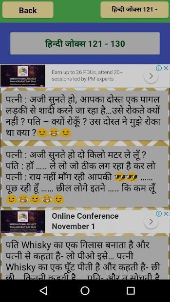 I would like to recommend you an application with large number of downloaders. 20,000+ users downloaded हिन्दी जोक्स - Hindi jokes latest version on 9Apps for free every week! All its functions are there and updated. This hot app was released on 2018-11-11. It is a very popular app on India now.