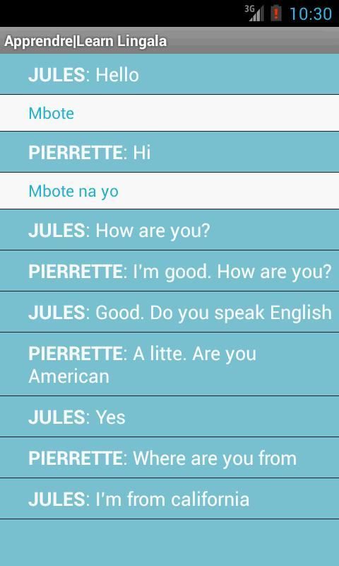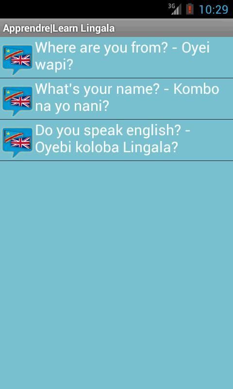 Aplikasi ini adalah untuk membantu pembicara non Lingala untuk belajar kosa kata melalui Lingala dan percakapan. Rekomendasi Anda dipersilahkan.