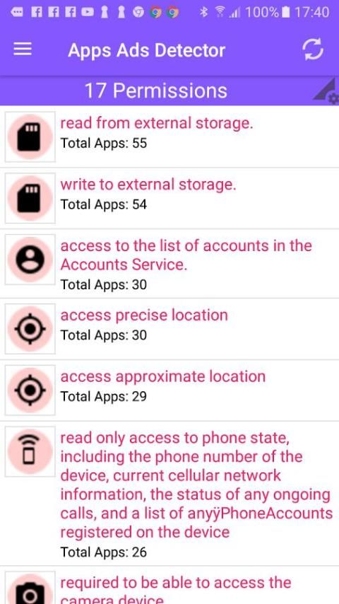 Mendeteksi aplikasi dengan iklan, hak akses dan berjalan di latar
