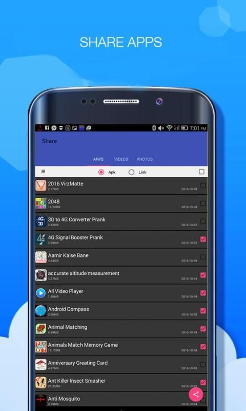 Pilih satu atau lebih link aplikasi, APK, foto, video dan berbagi