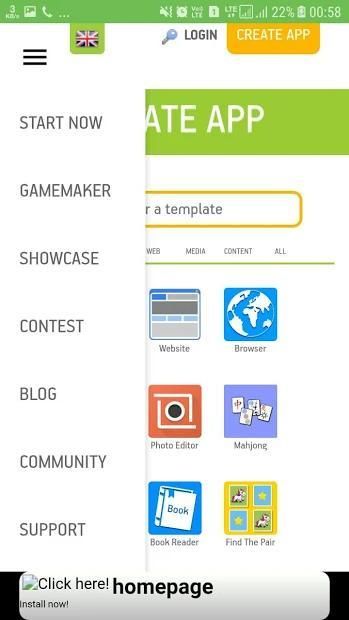 Konversikan konten web apa pun ke dalam Aplikasi Android menggunakan AppsGeyser - Pembuat Aplikasi Android Gratis. Bangun Aplikasi Anda Sendiri secara Gratis dan Dapatkan Uang.