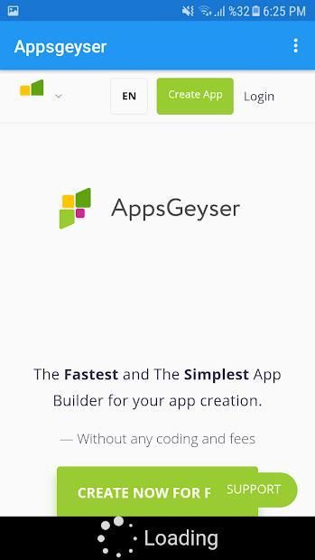 AppsGeyser adalah platform untuk pembuatan aplikasi online untuk membantu siapa saja yang ingin membuat aplikasi android dari awal. Tujuan AppsGeuser adalah untuk memungkinkan orang yang tidak memiliki pengetahuan atau pengalaman teknis untuk membuat aplikasi Android tanpa biaya menggunakan template aplikasi Android AppsGeel gratis.
