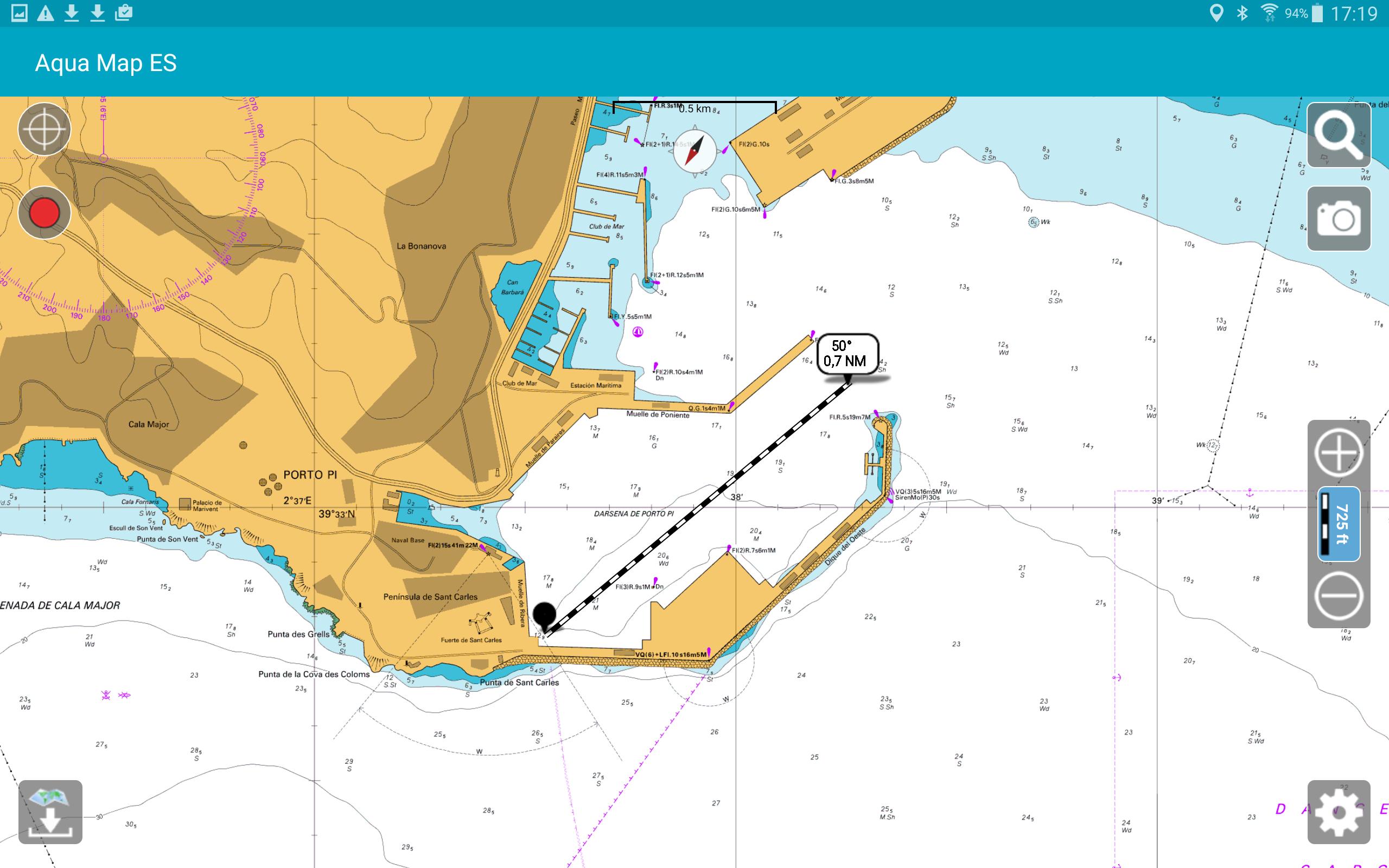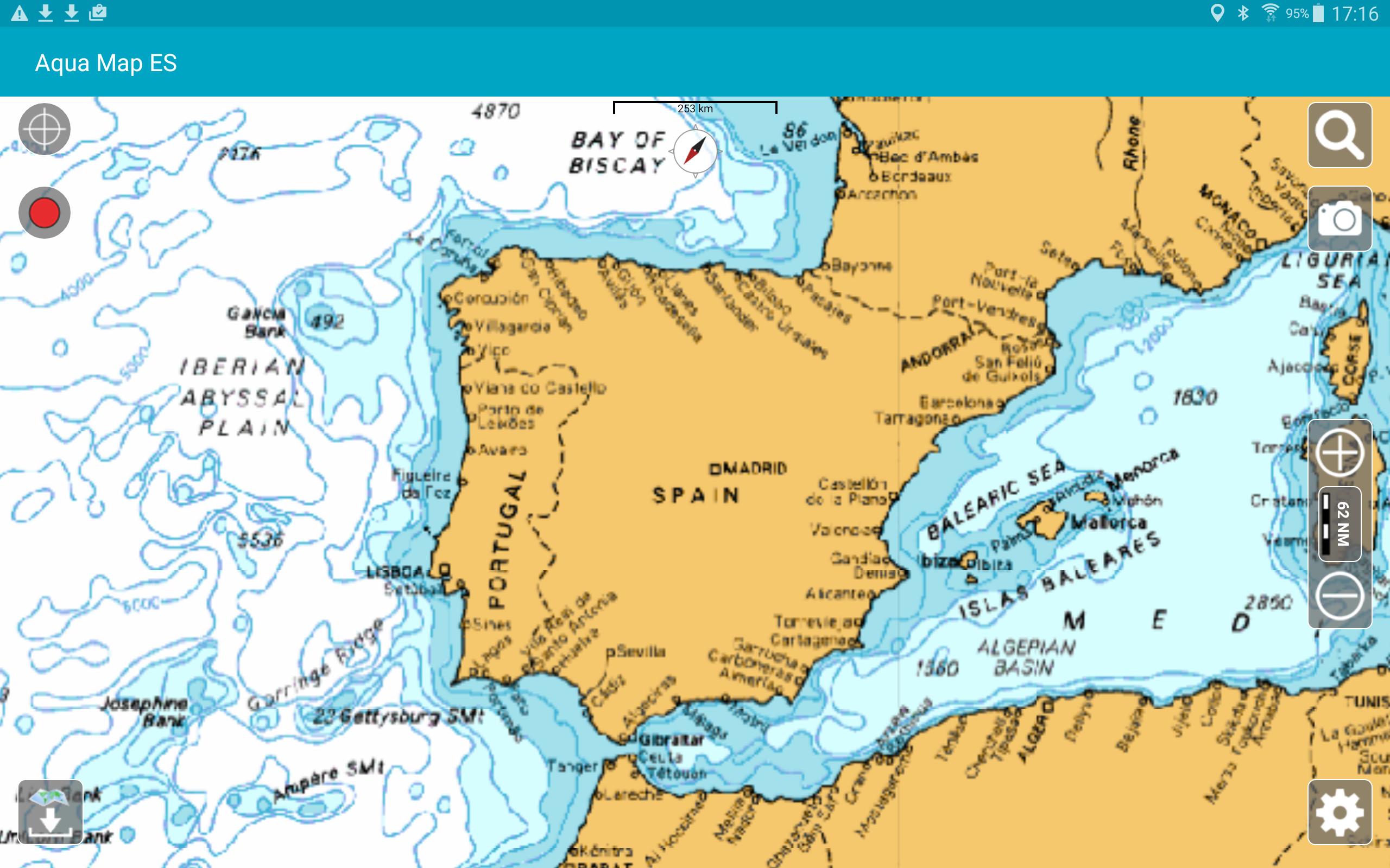 Aqua Map lets you download - via inApp purchase - the best charts derived from the material of Histituto Hidrogràfico de la Marina, Histituto Hidrogràfico of Portugal and the UK Hydrographic Office with their permission; all Nautical Raster Charts, have been prepared to offer a seamless coverage of the area.