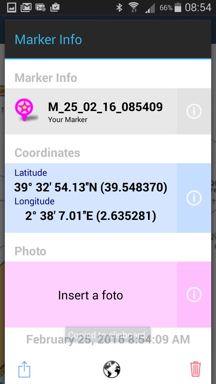Why do not sharing your favorite's markers or sending an email with your last daily track, with all the pictures you captured to show them on Earth or Maps ? With Aqua Map it is just a click.
