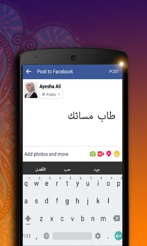 Arabic English Keyboard Now write your Stories and status in your own Arabic language . it is a dual mode keyboard you can chose either English Or Arabic language beautiful with beautiful custom themes you can set any type of background from library or using your gallery image as background of your keyboard theme. use can also enable auto complete prediction words and auto correction . this one is a amazing tool for you.