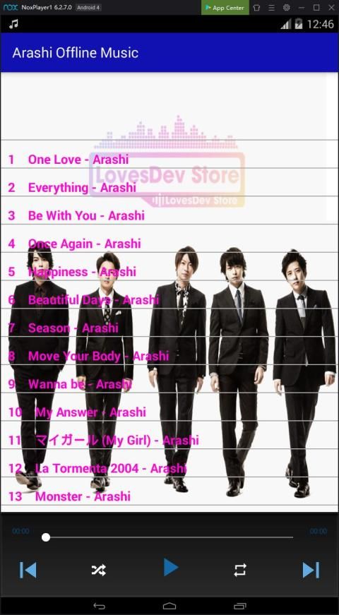 Arashi Offline Music Offline Music adalah aplikasi pemutar musik Jepang yang paling bermakna, menarik, dikembangkan dan didistribusikan oleh LovesDev Store. Aplikasi untuk memberikan pengalaman terbaik bagi pengguna.