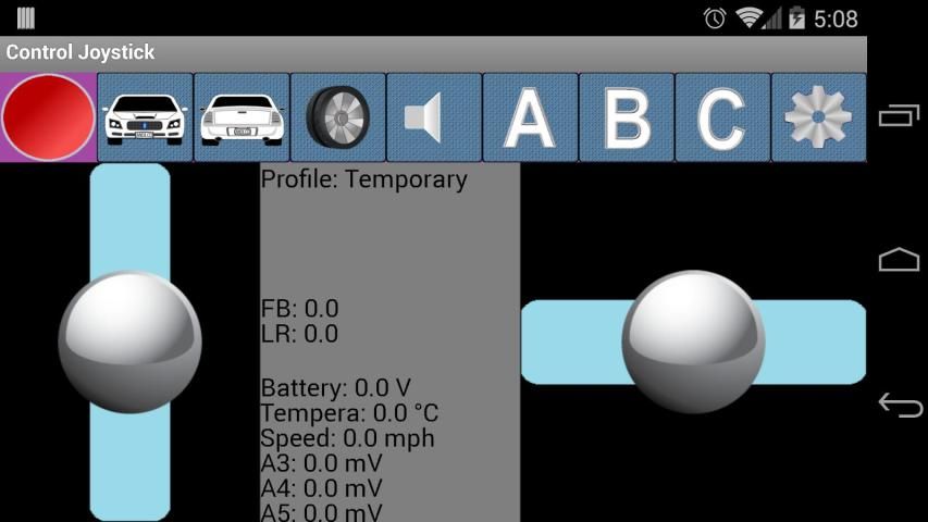 Jika Anda ingin tepat mengontrol Bluetooth Anda diaktifkan Arduino RC mobil, aplikasi ini memungkinkan Anda melakukan itu. Terdiri dari dua joystick, Anda dapat mengontrol kemudi dan kecepatan mobil. Anda juga dapat mengatur kemudi dan kecepatan berkisar dari dalam aplikasi. Dan jika Anda memiliki lebih dari satu mobil, masing-masing dapat memiliki satu set rentang. Dalam kasus Anda memiliki tangki, Anda dapat mengontrol meriam yang dengan hanya Toggling tombol. Dan karena Arduino dapat membaca nilai sensor, aplikasi ini dapat menerima enam bacaan independen. Dua yang pertama floating point bacaan, sedangkan sisanya empat adalah satu byte panjang. Aplikasi ini mengirimkan perintah setiap 50ms. Fitur ini memungkinkan mobil mendeteksi ketika di luar jangkauan, dalam hal ini akan berhenti sebelum menabrak.