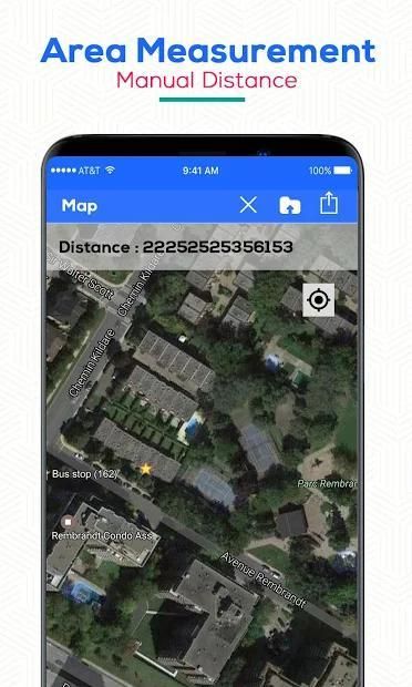 - Menentukan garis besar lapangan di tanah dengan mengklik peta kemudian menghitung superficies, keliling dan jarak di sekitar wilayah Anda
