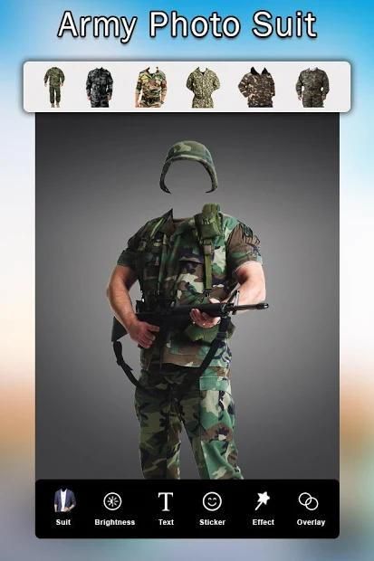 Army photo suit provides official and causative suit just about into your wardrobe. There ar in type of frames during this app. Referred to as army man, who ar attending to defend against war and attack.