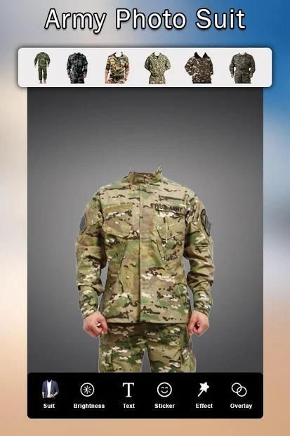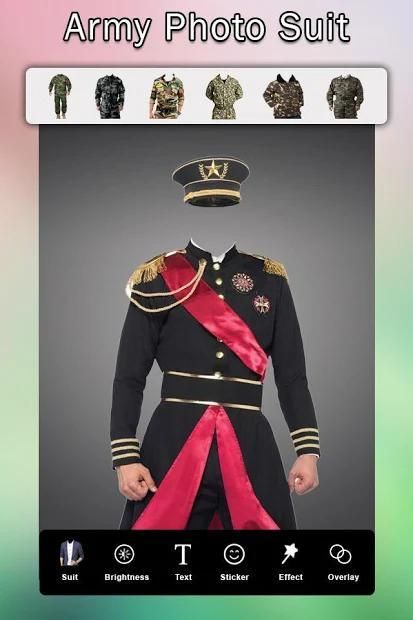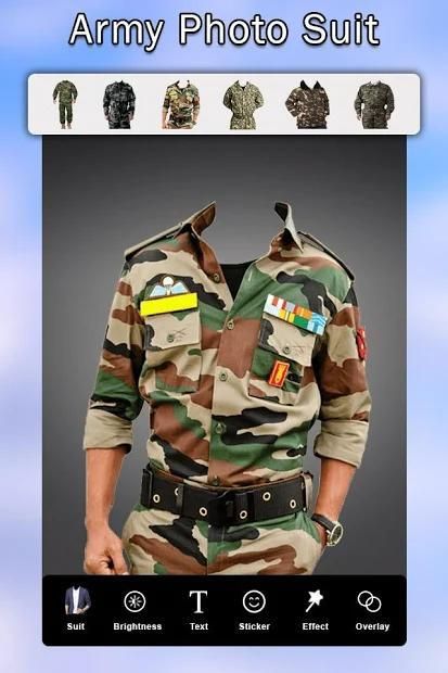 - This app has different army dress photo suit, you can select your favorite army dress suit.