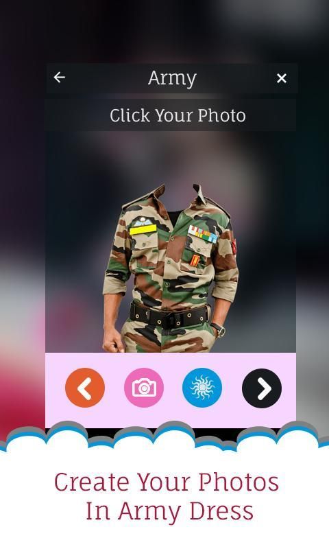 Membuat tubuh Anda seperti orang tentara. Aplikasi akan bekerja seperti membuat efek nyata foto tentara baju Anda. Tentara Photo suit adalah koleksi terbaik dan indah HD