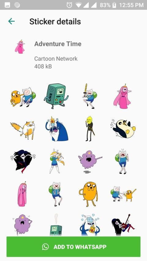 1. Adventure Time Sticker untuk paket WhatsApp.