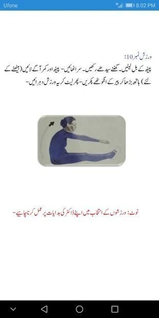 ایپ میں جوڑوں کے لیےخاص طور پر مفید ورزش کے طریقے بھی بتائے گئے ہیں۔ ان کی مدد سے جوڑوں کو لچکدار رکھا جا سکتا ہے اور درد کو آارم پہچانے میں مدد مل سکتی ہے۔ تاہم ان پر عمل کرنے کے لئےآپ کو اپنے معالج سے مشورہ کرنا چاہیے۔