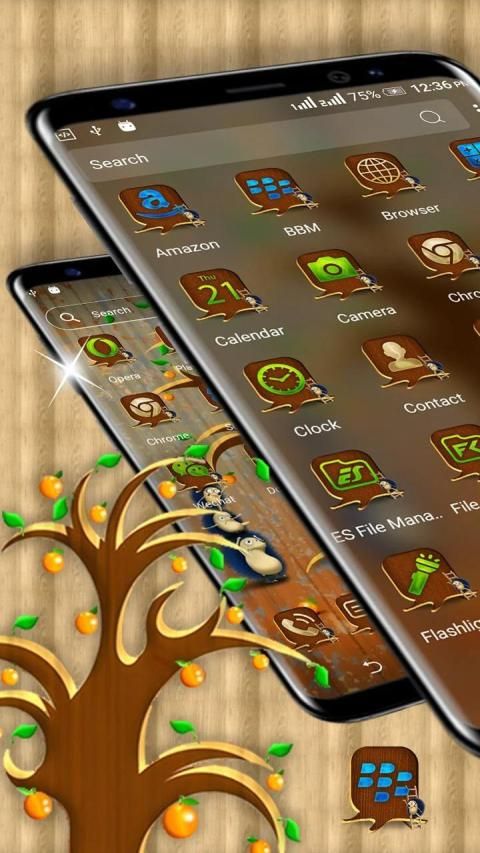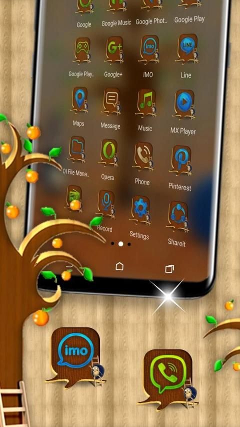 • Artificial Fruit Tree Theme included many HD customized Icons of popular apps, social app like (Snapchat,imo,viber,twitter etc) System app icons.