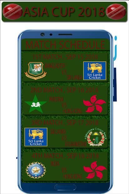 Jadwal dan Aplikasi Skor Piala Asia 2018 di Play Store dengan meja stadion dan semua catatan. ASIA CUP CRICKET 2018 akan dimulai pada 15 September 2018. Total 6 tim akan ambil bagian dalam sesi ini. Final akan dimulai pada 28 September, 2018. Semua daftar pemain tim dapat sanggup dalam aplikasi ini. Anda juga dapat menemukan bola ke bola skor kriket hidup di aplikasi ini.
