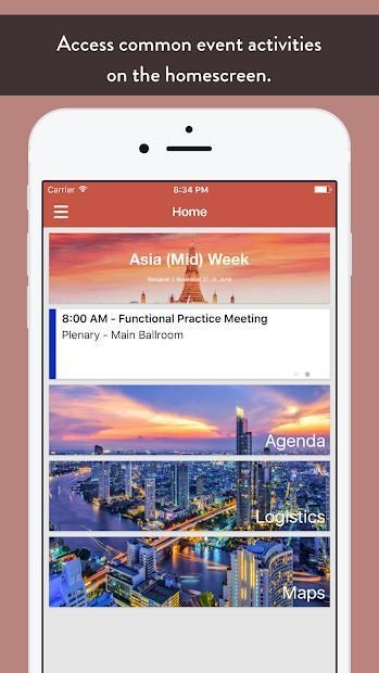 Aplikasi Asia (Tengah) Week 2018 memungkinkan Anda melihat agenda pribadi Anda, mengajukan pertanyaan, menyelesaikan survei, mengakses materi dan bertemu logistik, membuat catatan, dan banyak lagi.
