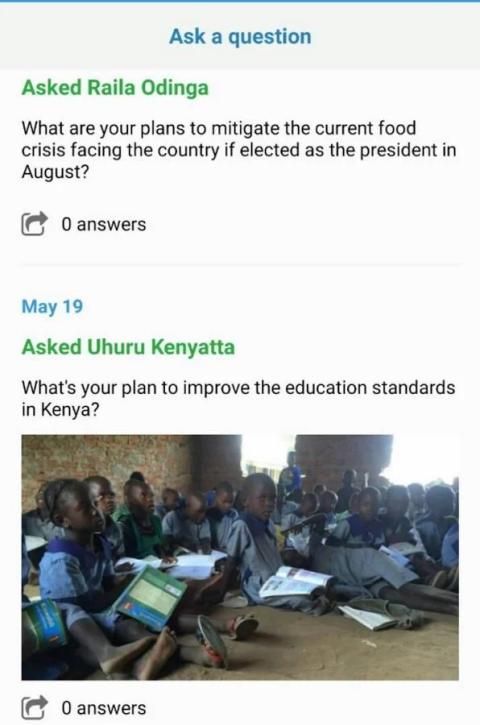 Landasan mobile yang memungkinkan Anda untuk berinteraksi dengan calon presiden. Yang Anda butuhkan untuk membuat account menggunakan facebook, twitter atau google dan meminta utama pertanyaan calon presiden.