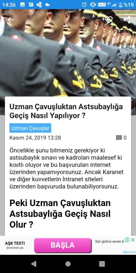 Yeni askere gidecek olanlar, uzman çavuş olmak isteyenler uygulamamızı takip ederek tüm alımlardan haberdar olabilirler. Uygulamamız hem internet hem de internetsiz olarak kullanılabilmektedir. Dilediğiniz yazıyı favorilerinize kaydederek bir dahaki sefere kaydetmiş olduğunuz yazıyı internetsiz olarak tekrar okuma şansınız bulunmaktadır.