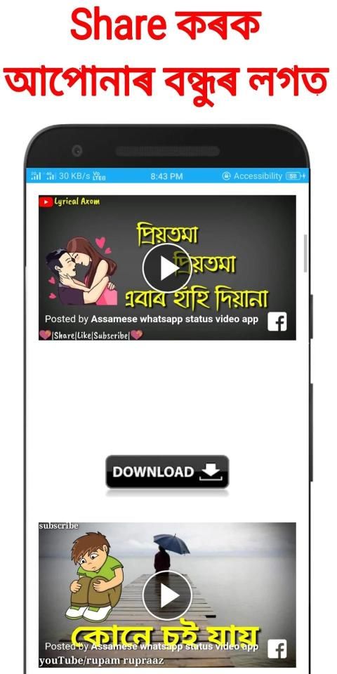 Assamese Video Statusapp memberikan koleksi terbesar Budaya Assam, Cinta Assam, Assamese Sad, Assamese Romantic, dan Video Super Hit Assam.